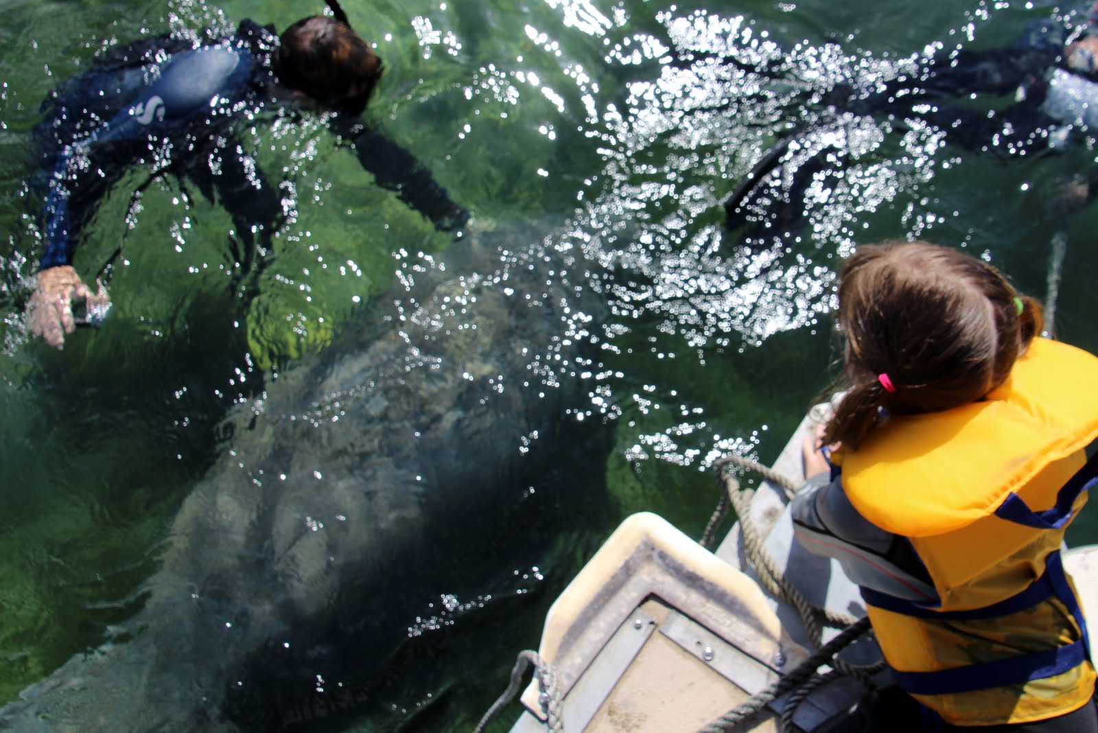 Below the above water picture of Sierra touching the Manatee and then a below water picture as well.