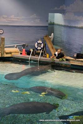 As well as "Snooty" their resident Manatee who is 67 years old and has been at this aquarium since he was 11 months old. He has been in captivity so long that he can not be released. He gets well taken care of here as you can see by his size! He has even taught himself some tricks like pulling himself up on deck for snack.