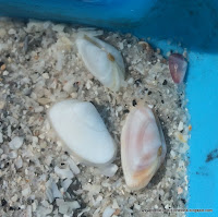 Sierra collected small clams and new creatures we had to google... which were called Mole Crabs or Sand Fleas and are apparently edible...see HERE. Don't worry we let all of ours go.